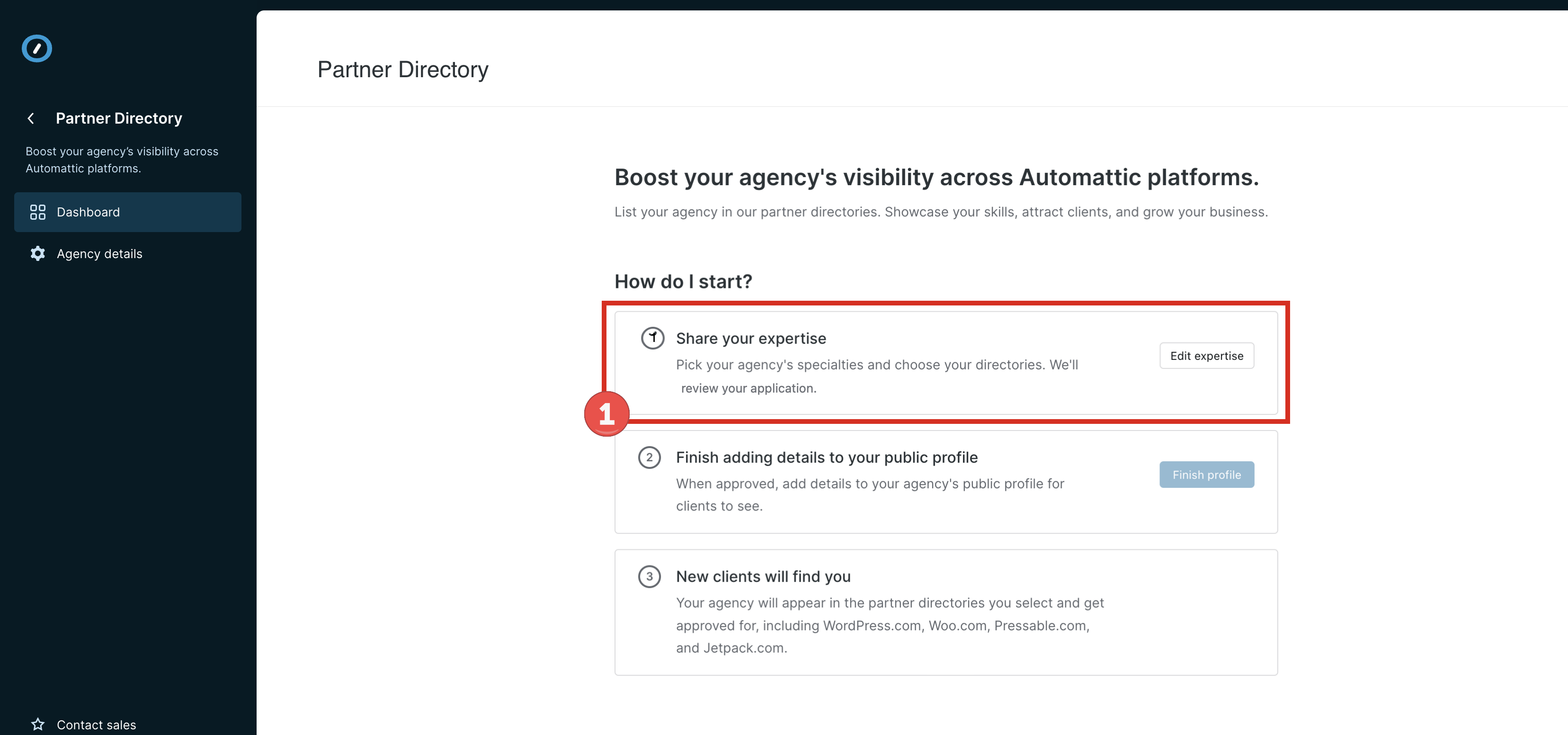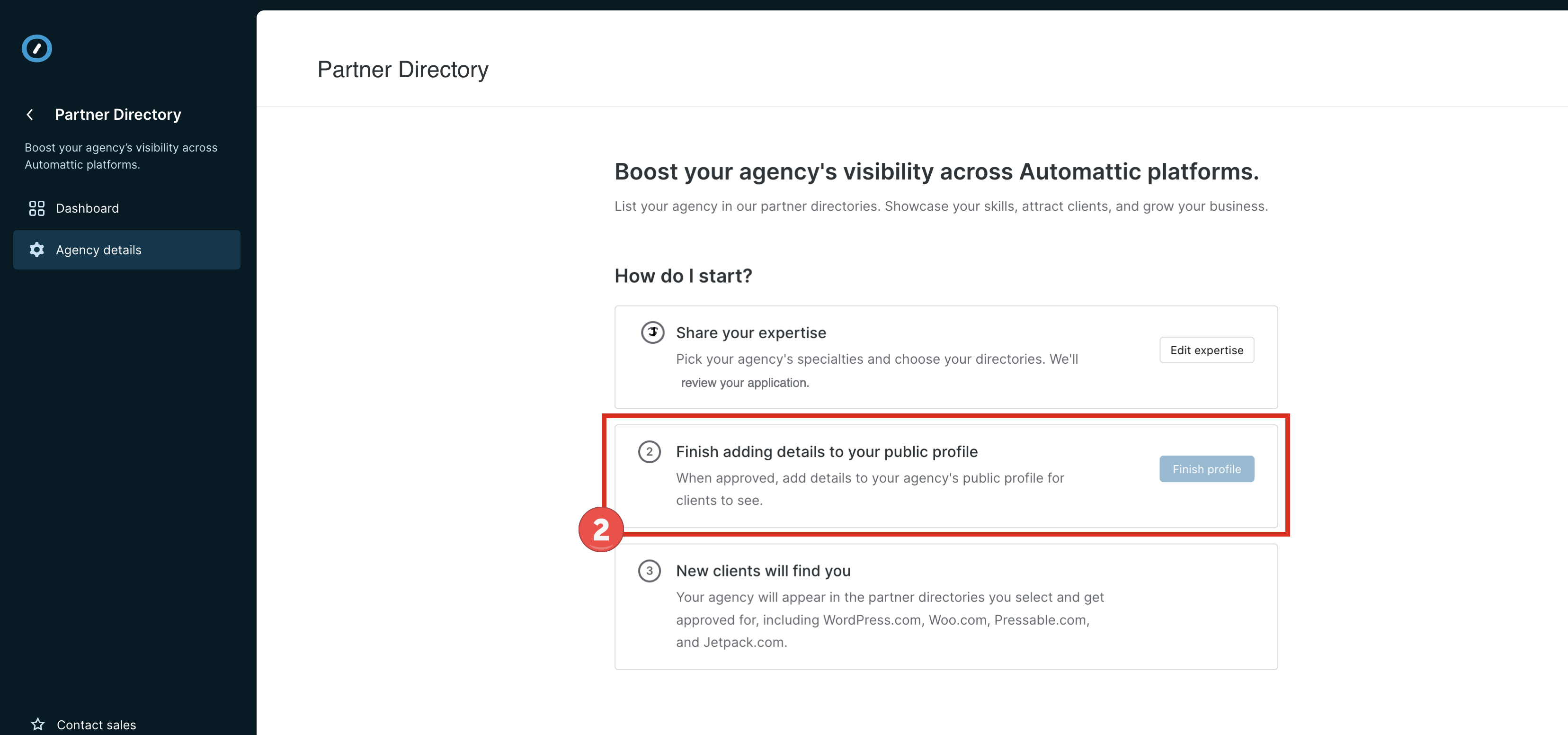 Only Agency Partners, Pro Partners, and Premier Partners will have the opportunity to apply for a WooCommerce.com, WordPress.com, Jetpack.com, Pressable.com, and/or WordPress VIP partner directory listing(s). See tiers and benefits to learn more about becoming an Agency Partner, Pro Partner, or Premier Partner. These listings provide visibility and recognition within the WordPress community and are a testament to the high standards of service provided by the agencies.