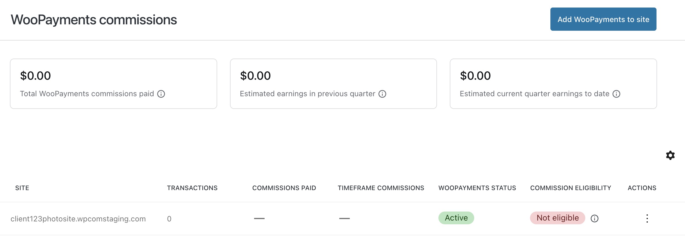 📌 A site can have an “Active” WooPayments status but still show “Not eligible” for commissions if it hasn’t met the required criteria.